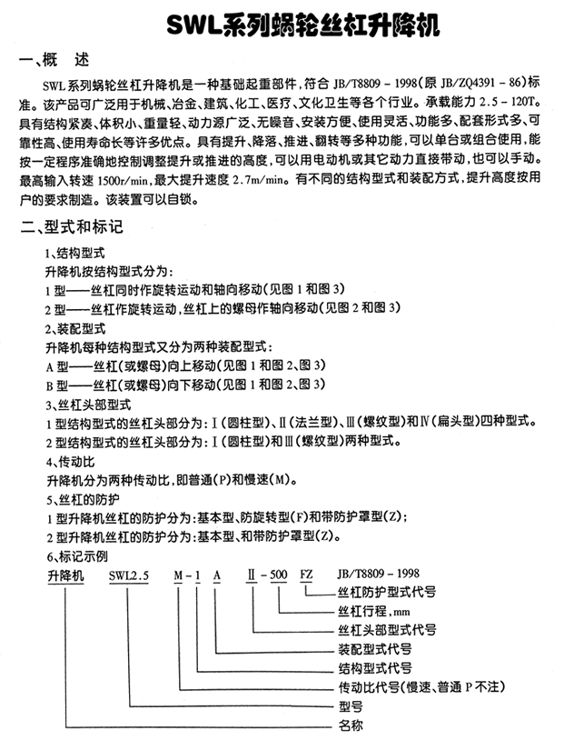>> SWL、JWM絲桿升降機(jī) 提升重量0.5-120噸