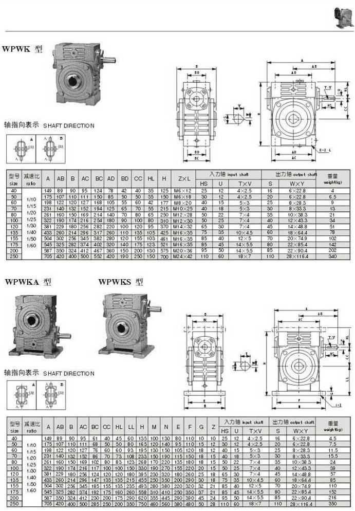 WPWK,WPWKA,WPWKS型型號參數(shù)圖表