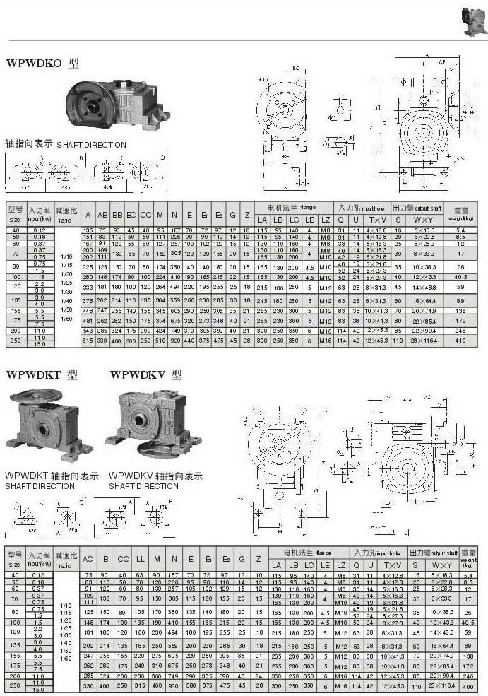 WPWDKO,WPWDKT,WPWDKV型型號參數圖表