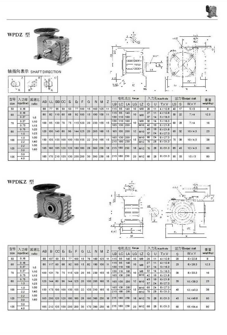 WPDZ,WPDKZ型型號參數圖表