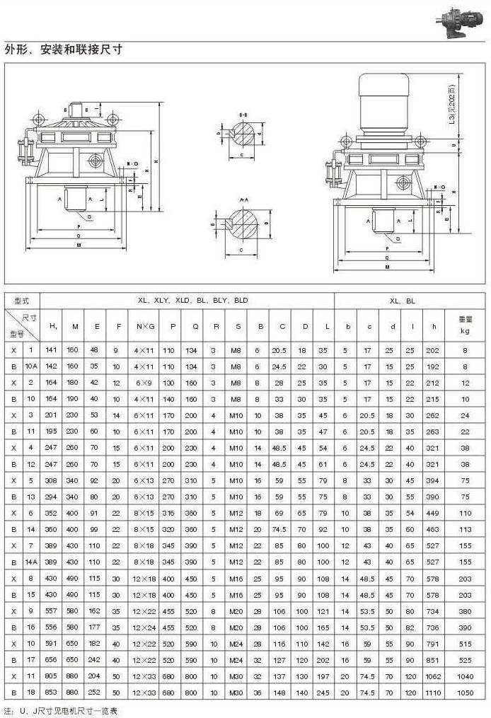 X . B擺線針輪減速機外型圖,安裝和聯結尺寸三 29